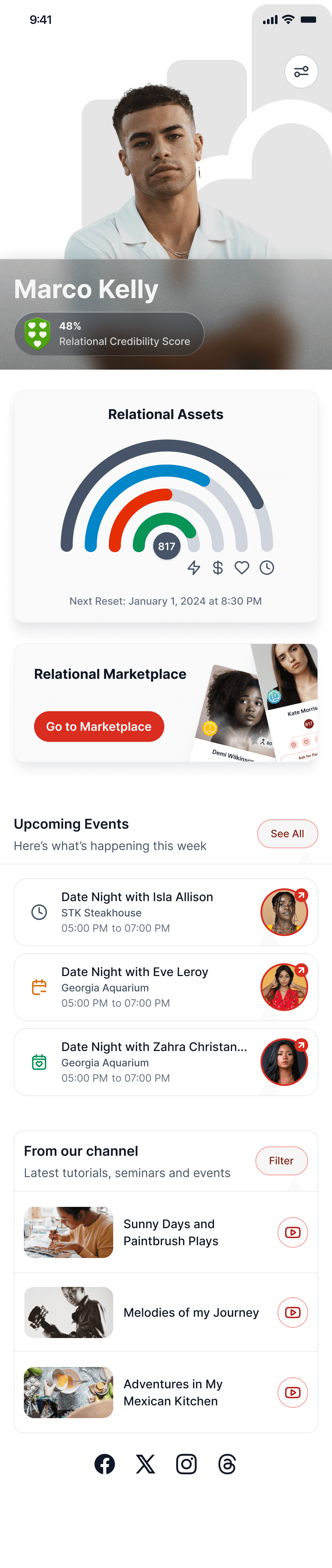 A unique dating app designed to enhance dating experiences and support relationship growth through post-date feedback and "Relational Assets" scoring. As a cross-platform application for iOS and Android, it aims to match users more accurately by analyzing behavior beyond stated preferences. My role as the sole designer involved developing over 200 screens and an interactive prototype to aid in the app’s venture capital funding efforts.