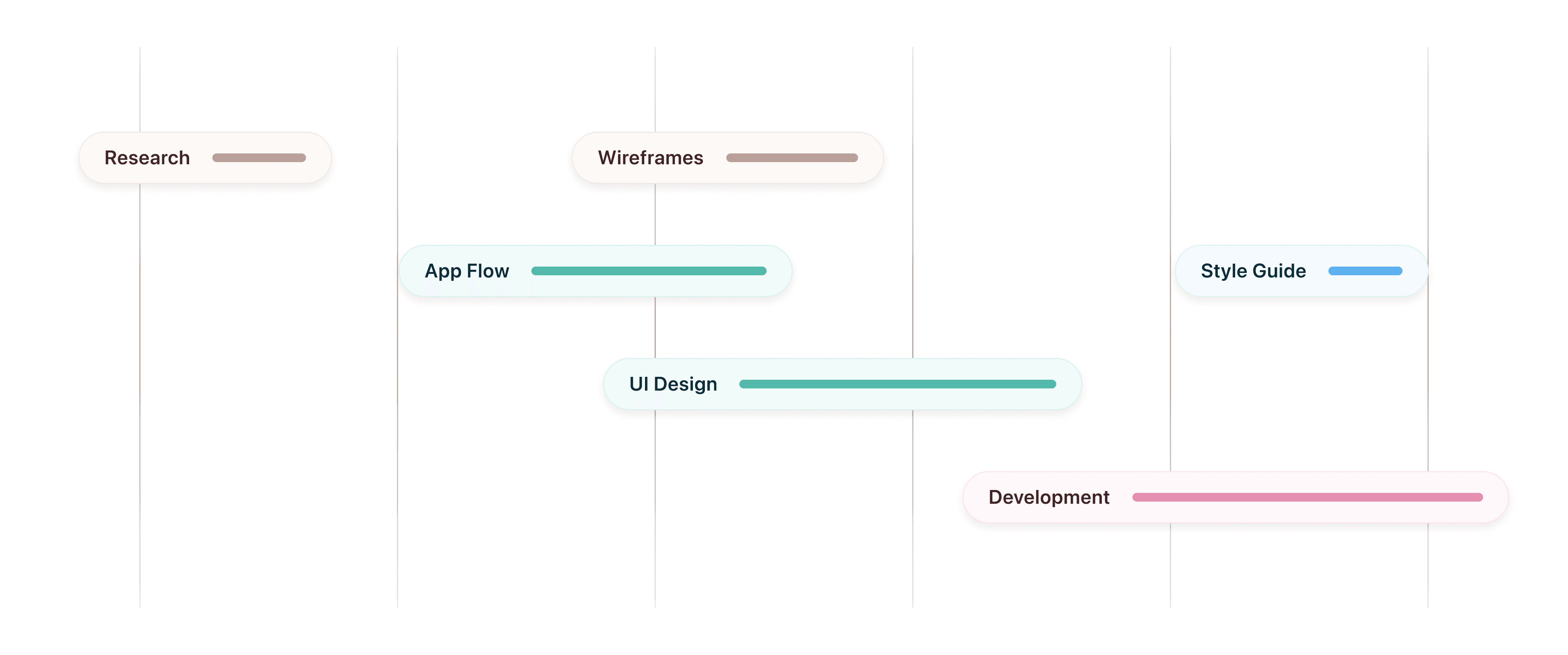 This figure presents an overview of the project's lifecycle, illustrating the phased approach from initial market research through to the development stage. It encapsulates the meticulous process undertaken to ensure that each step, from wireframing to UI design and the establishment of a style guide.