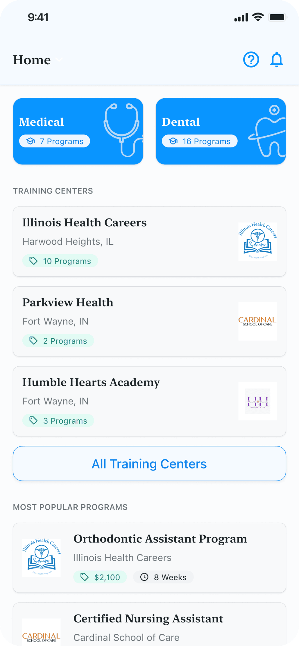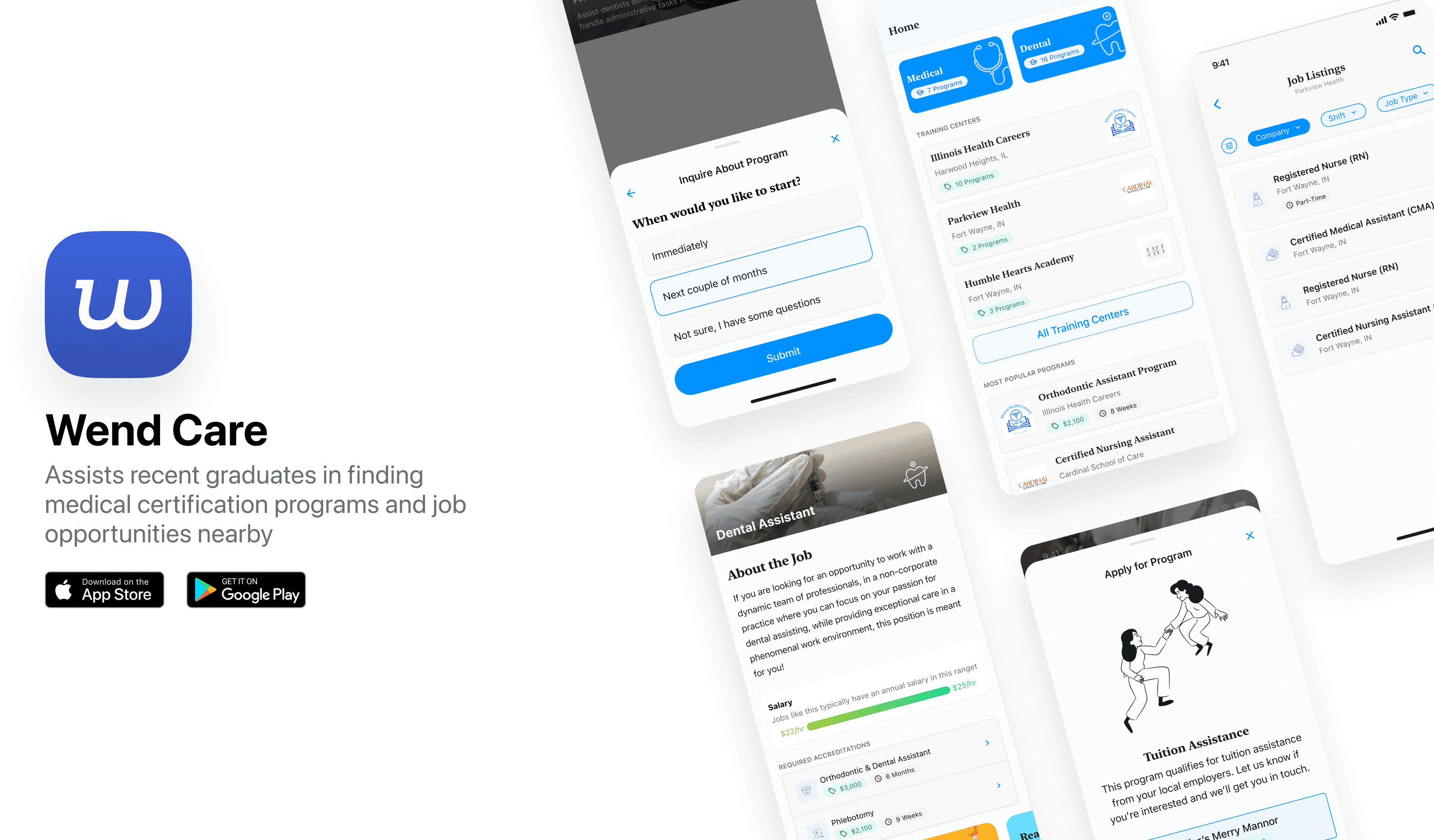 Wend Care was designed as a comprehensive mobile application aimed at assisting recent graduates in navigating medical certification programs and job opportunities within their locale. My role focused on enhancing user experience through refined program search functionalities, job matching capabilities, and user profile management. Throughout the project, I developed an extensive design system and tailored the app to cater to specific fields, namely nursing and dental programs, enabling users to compare, discover, and apply to programs directly through the app.